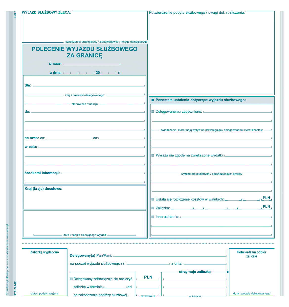 505-2Z Polecenie wyjazdu służbowego za granicę