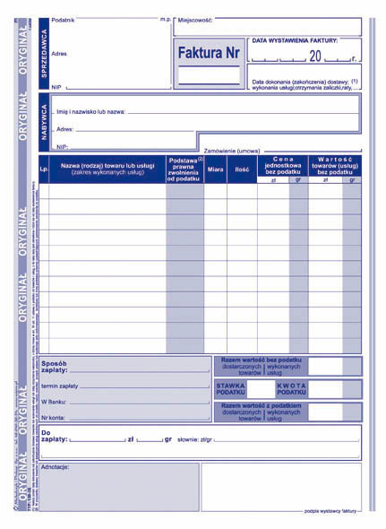 zastosowanie:  faktury i inne dokumenty wynikające z przepisów o podatku od towarów i usług