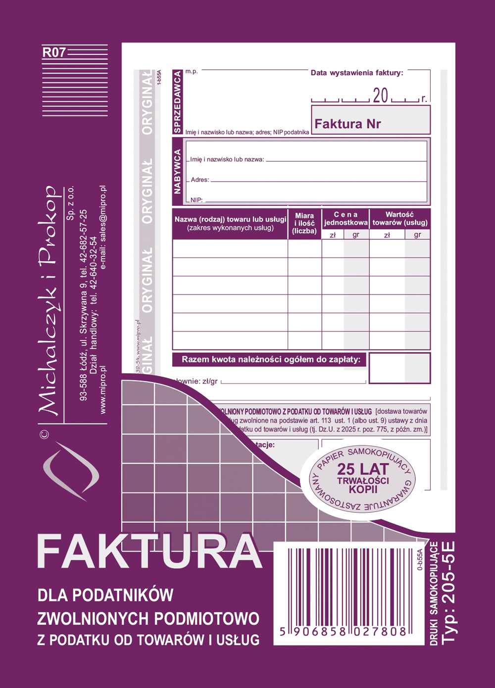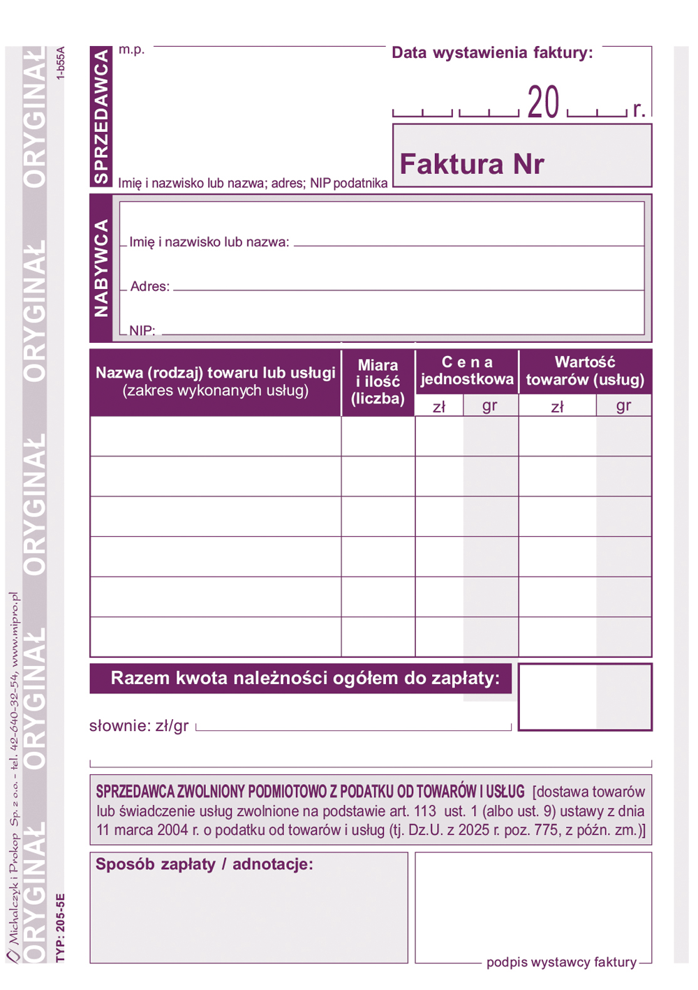 | zastosowanie: | faktury i inne dokumenty wynikające z przepisów o podatku od towarów i usług |