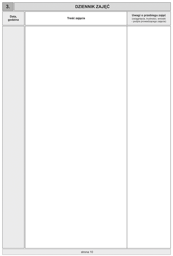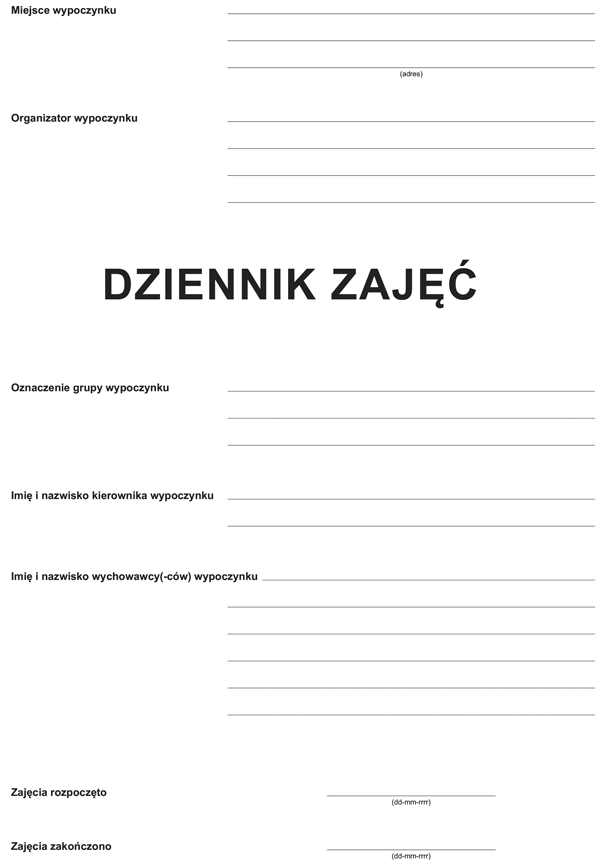 A-150-1 Dziennik zajęć realizowanych podczas wypoczynku dzieci i młodzieży